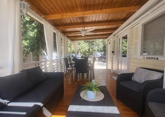 Die Mobile Home No Stress Soline verfügt über eine Terrasse mit Blick auf den Garten und ist 35 Autominuten vom Flughafen Zadar entfernt gelegen.